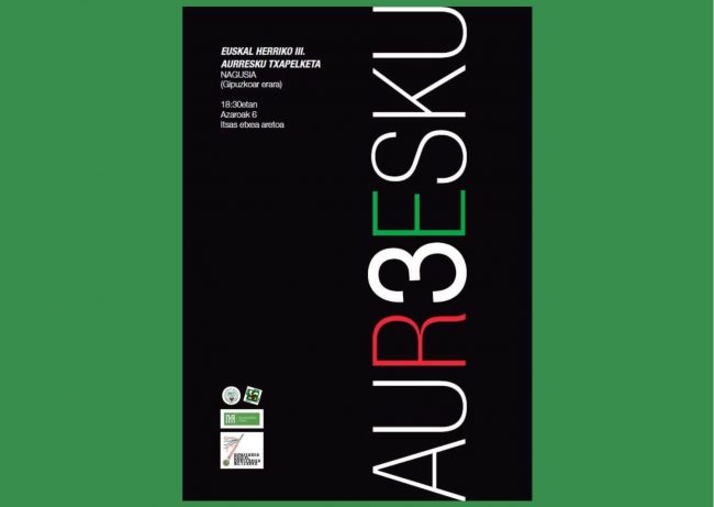 Datorren Azaroaren 6an, larunbata, arratsaldeko 18:30ean, Hondarribiako Itxas aretoan (Gipuzkoa) Euskal Herriko III. Aurresku Txapelketa Nagusia (Gipuzkoar erara) ospatuko da, Hondarribiako Udala, Gipuzkoako Euskal Dantzarien Biltzarra eta Egoipar eta Ibarla Meaka Dantza Taldeak antolaturik. info gehiago: EUSKAL HERRIKO III AURRESKU TXAPELKETA NAGUSIA (Gipuzkoar erara) Eskuratu zure sarrera: SARRERAK