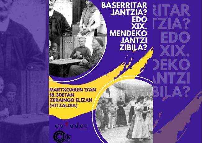 Ostegun honetan, martxoaren 17an, 18:30ean, Zeraingo elizan, Zeraingo Solkie eta Beasaingo Ostadar dantza taldeek antolatuta, “Baserritar jantzia edo XIX. mendeko jantzi zibila?” hitzaldi irekia eskainiko da. Azalpenak jasotzeaz batera, garai hartako jantziak zuzenean ikusteko aukera ere egongo da.